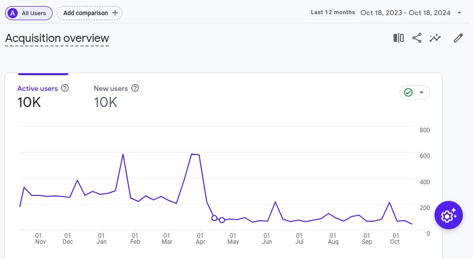 Active Users adalah jumlah pengguna unik yang aktif pada waktu tertentu, berdasarkan interaksi langsung dengan website atau aplikasi.