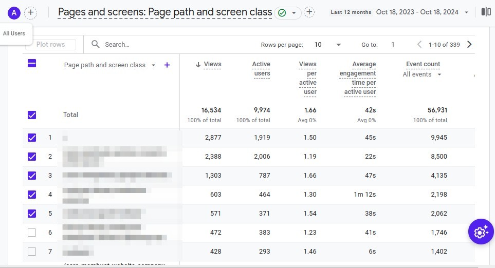 Pergi ke Engagement > Page and Screens untuk melihat halaman mana yang paling banyak dikunjungi.