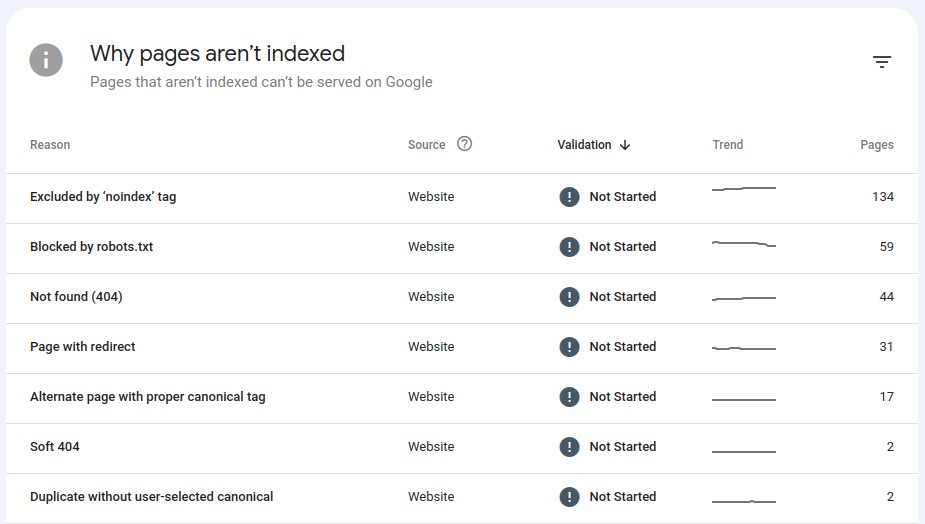 Crawled - currently not indexed: Halaman sudah dimengerti kontennya, tapi Google memutuskan untuk tidak mengindex.