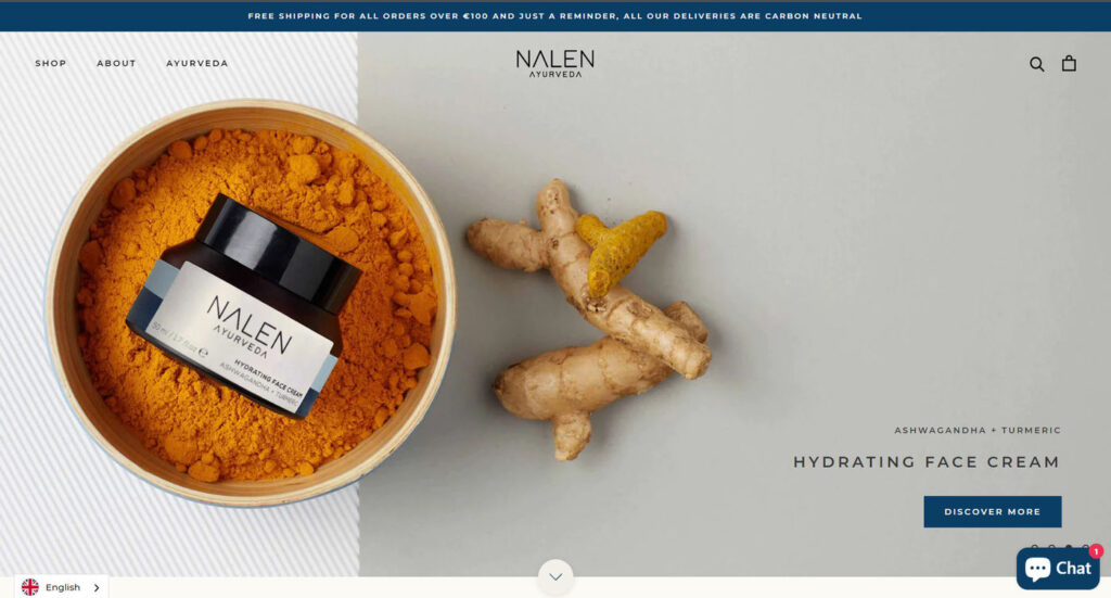 Tema dari website bisnis satu ini adalah kesederhanaan dan natural. Selain dari foto produknya yang terlihat jelas, Nalen Ayurveda juga menonjolkan branding mereka dengan tulisan berisikan informasi menarik terkait energi alam yang menginspirasi produk mereka.