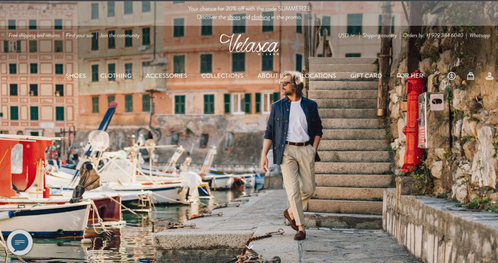Berbeda dengan kedua website bisnis sebelumnya yang cenderung minimalis, Velasca lebih berani tampil berwarna dengan tema earth-tone secara keseluruhan. Velasca menceritakan tentang mereka dengan elegan, terlihat jelas kalau website ini ‘berkelas’ dengan produk yang dijual bukanlah produk sembarangan. Bila anda mencari inspirasi website bisnis yang terkesan mewah, Velasca bisa menjadi contoh sempurna.