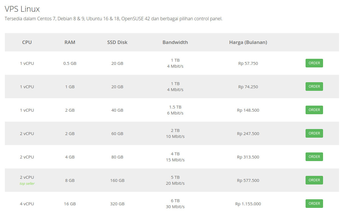 | VPS | Rp1.200.000 - 12.000.000/tahun |